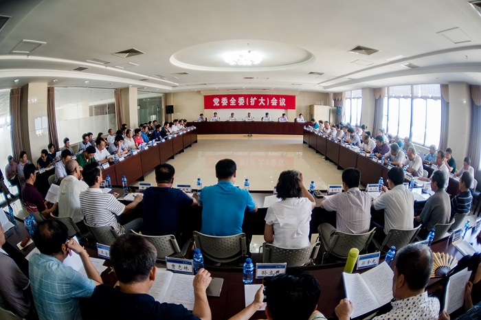 7月12日下午,學校在綜合樓六樓中廳會議室召開黨委全委(擴大)會議,回顧總結2017年上半年工作,研討審議下半年工作要點,安排部署暑假工作。校領導崔明德、張偉、孫祥斌、郭善利、鄧昌亮、宋中民、周勝良及黨委委員出席會議。校紀委委員、教學單位黨政主要負責人、部處室主要負責人、兩代表一委員、民主黨派負責人代表以及教師代表列席會議。會議由黨委副書記張偉主持。