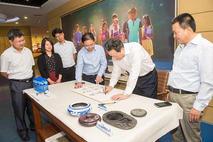 訪問期間,何慧星一行參觀了學校校史展館、千米文化長廊,實地考察了“分子藥理和藥物評價”教育部重點實驗室。