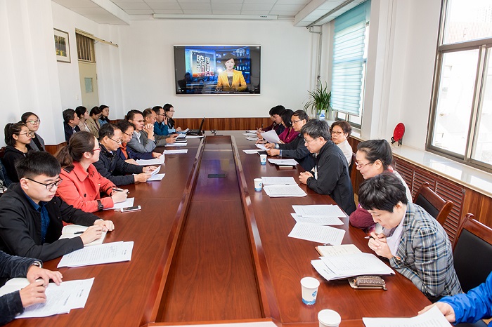 喜迎十九大,續(xù)寫新輝煌。在舉世矚目的中國(guó)共產(chǎn)黨第十九次全國(guó)代表大會(huì)即將開(kāi)幕之際,10月17日上午,煙大師生歡聚一堂,集中學(xué)習(xí)黨的十八屆七中全會(huì)精神,共同感受5年來(lái)黨和國(guó)家取得的歷史性成就。黨委書記張偉主持座談會(huì),黨委組織部、黨委宣傳部、黨委統(tǒng)戰(zhàn)部、校工會(huì)(婦委會(huì))、校團(tuán)委、學(xué)生工作處主要負(fù)責(zé)人及師生代表參加座談。