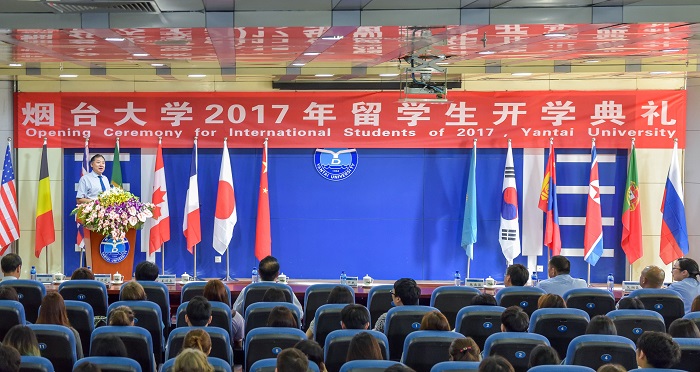 9月21日上午,2017級留學生開學典禮在逸夫廳舉行。學校黨委常委、副校長宋中民,教務處、國際合作交流處、學生工作處、國際教育交流學院負責人出席開學典禮。典禮特邀煙臺市出入境管理分局境外人員管理大隊大隊長孫庚、警官范煙晶和付青晴。來自16個國家的200余名留學生參加開學典禮。