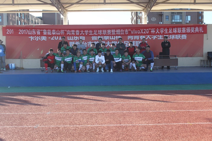 11月11日下午,2017年山東省“魯能泰山杯”向青春大學生足球聯賽暨煙臺市首屆大學生足球聯賽決賽在山東省城市服務技師學院進行,我校足球隊經過90分鐘激戰,以2:1戰勝山東工商學院足球隊,奪得冠軍。