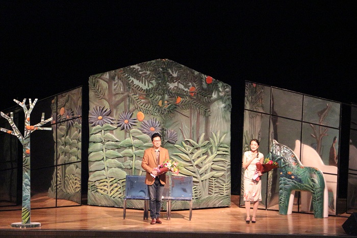 在學校舉辦“高雅藝術進校園”活動之際,省話劇院顏勤、楊茗羽兩位老師還應邀到我校天狼星話劇社與青年學生面對面交流話劇表演。