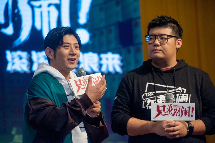 見面會上,高曉攀通過講述個人經歷和奮斗歷程,充分展現了青年人努力奮斗的優良品質。他說,演員的每一個角色,每一個出場,每一個鏡頭都牽絆著他,自己期待著講好每一個故事。隨后,現場播放了由高曉潘自導自演的電影——《兄弟,別鬧!》預告片,影片情節精彩,“笑果”非同一般,有高曉攀的地方就有尤憲超,有他們倆的地方就有笑點,高曉攀還和大家一起分享在戲里戲外的兄弟情誼。在互動環節中,兩位演員與現場同學們進行了精彩的演技比拼,熱情地回答了同學們提出的問題,與同學們分享了他們在創作過程中的小故事。現場笑聲此起彼伏,氣氛十分熱烈。活動最后,高曉攀、尤憲超和現場觀眾合影留念。