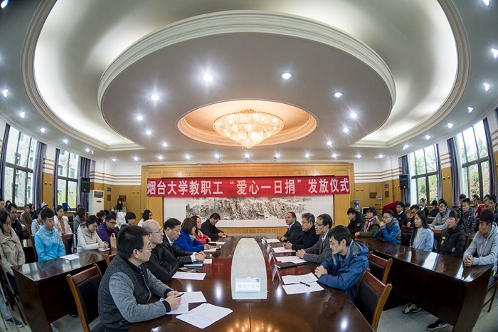 11月16日下午,煙臺大學教職工“愛心一日捐”發放儀式在辦公樓201會議室舉行。副校長孫祥斌出席并講話,校工會、學工部主要負責人,各學院工會主席、教職工代表、受助學生參加發放儀式,發放儀式由學工部部長于秀國主持。