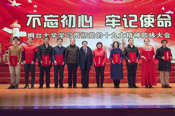 12月27日晚,大學生活動中心燈光璀璨、歌聲激昂,校機關合唱隊一曲飽含深情的《旗幟頌》拉開了“不忘初心,牢記使命”煙臺大學學習貫徹黨的十九大精神歌詠大會的序幕。學校領導郭善利、孫祥斌、鄧昌亮、宋中民、周勝良與全校師生一起觀看并參加了演出?;顒又荚谏钊雽W習宣傳貫徹黨的十九大精神,進一步增強各級黨組織的創造力、凝聚力、戰斗力。
