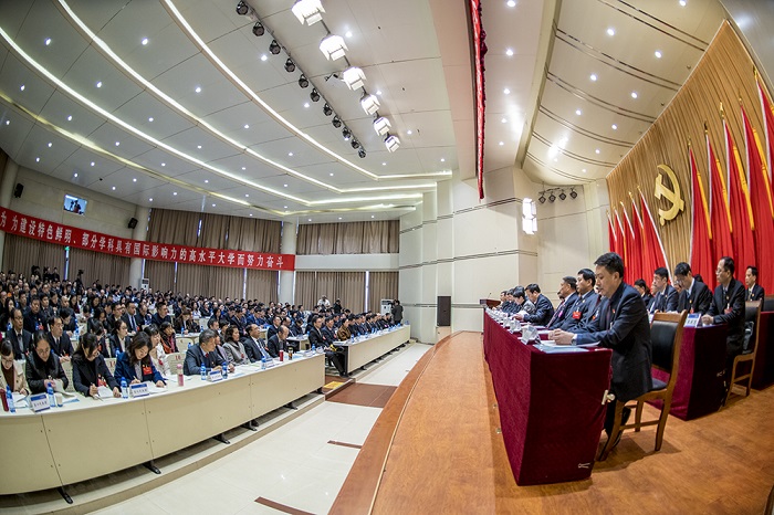 張偉同志代表中國(guó)共產(chǎn)黨煙臺(tái)大學(xué)第三屆委員會(huì)向大會(huì)作題為《不忘初心牢記使命 開(kāi)拓創(chuàng)新奮發(fā)有為為建設(shè)特色鮮明、部分學(xué)科具有國(guó)際影響力的高水平大學(xué)而努力奮斗》的報(bào)告。張偉從加強(qiáng)黨的領(lǐng)導(dǎo),黨委領(lǐng)導(dǎo)核心作用充分發(fā)揮;全面從嚴(yán)治黨,黨建思想政治工作成效明顯;深化內(nèi)涵建設(shè),學(xué)校綜合實(shí)力不斷提升三方面回顧了學(xué)校第三次黨代會(huì)以來(lái)的工作。第三次黨代會(huì)以來(lái),學(xué)校堅(jiān)持以馬克思列寧主義、毛澤東思想、鄧小平理論、“三個(gè)代表”重要思想、科學(xué)發(fā)展觀、習(xí)近平新時(shí)代中國(guó)特色社會(huì)主義思想為指導(dǎo),立足山東經(jīng)濟(jì)文化強(qiáng)省建設(shè),緊緊圍繞學(xué)校確立的目標(biāo)任務(wù),科學(xué)謀劃,真抓實(shí)干,學(xué)校綜合實(shí)力和辦學(xué)水平進(jìn)一步提升,各項(xiàng)事業(yè)呈現(xiàn)出蓬勃發(fā)展的良好態(tài)勢(shì)。張偉指出,在看到成績(jī)的同時(shí),我們也必須清醒地認(rèn)識(shí)到,對(duì)照黨和人民的要求,對(duì)照建設(shè)高水平大學(xué)的目標(biāo),對(duì)照全體師生員工的期盼,我們還存在一些問(wèn)題和不足,我們必須高度重視,并采取有效措施認(rèn)真加以解決。回顧歷史,面向未來(lái),我們清醒地認(rèn)識(shí)到:必須提高政治站位,充分發(fā)揮黨委領(lǐng)導(dǎo)核心作用;必須牢記初心使命,主動(dòng)融入國(guó)家和省市發(fā)展需求;必須強(qiáng)化思想引領(lǐng),著力激發(fā)廣大師生員工活力;必須堅(jiān)持改革創(chuàng)新,牢牢把握高水平大學(xué)建設(shè)規(guī)律;必須堅(jiān)持問(wèn)題導(dǎo)向,扎實(shí)推動(dòng)各項(xiàng)工作落到實(shí)處。