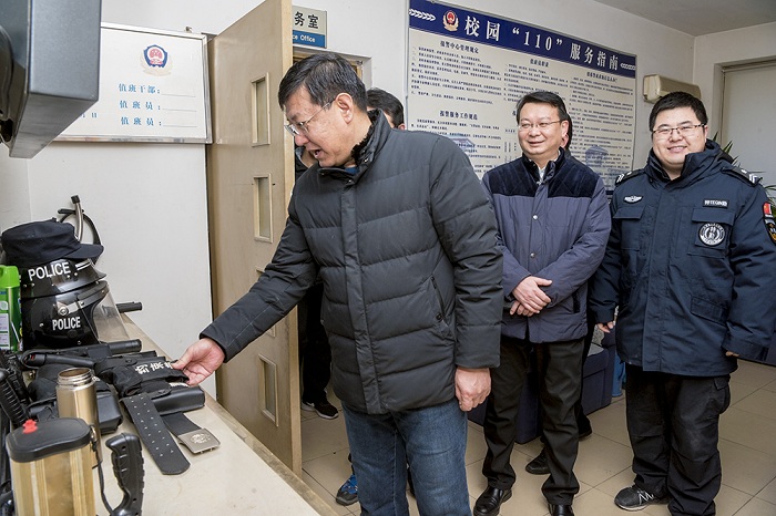 王強先后來到后勤管理處能源管理服務中心、保衛處110指揮中心、第六餐廳、校園綠化衛生服務中心、修建服務中心、社區服務中心、家屬區物業服務中心和校醫院,代表學校黨委和行政向奮斗在一線的職工表示衷心的感謝,并向他們致以誠摯問候和新春祝福。堅守一線的職工對學校的關心和關懷表示感謝,表示將努力做好本職工作,確保師生員工度過一個祥和快樂的新春佳節和寒假。