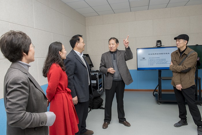 論壇報告結束后,宋中民副校長在教務處、網絡與教育技術中心有關人員的陪同下來到第六教學樓,實地查看微課慕課創作室,對創作室的啟用進行揭牌。在揭牌儀式上,宋中民副校長深有感觸地說:要提高教育教學水平必須實施信息技術與教育教學深度融合,微課慕課創作室必將為學?;旌鲜浇虒W改革和在線課程的制作提供有力支撐。同時,宋中民副校長還就創作室如何開展教師使用培訓和開放預約明確了要求。