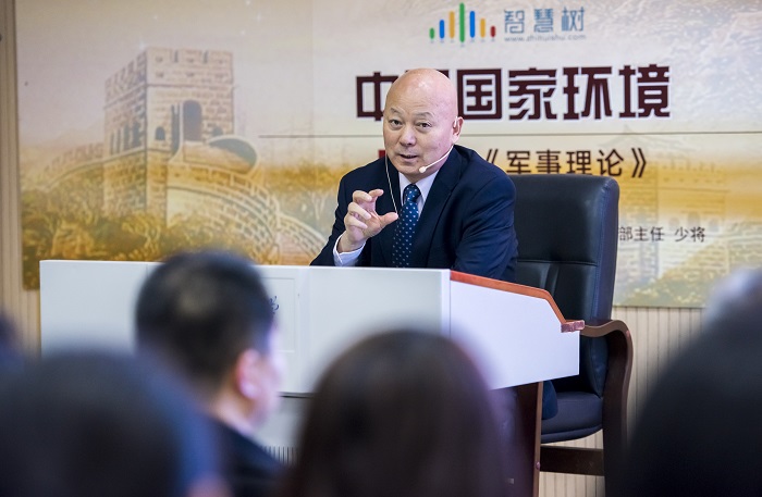 4月3日晚,在線課程《軍事理論》直播互動見面課首次走進山東、走入我校,在綜合樓410沉浸式直播互動教室開講。課程由國防大學原戰略教研部主任朱成虎少將主講,孫景偉少將現場主持。校黨委常委、副校長宋中民出席見面課并致辭。