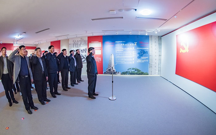 參觀過程中,“兩委”委員仔細觀看實物展品,認真聽取講解員介紹,全面回顧了膠東人民在中國共產(chǎn)黨的領導下,在不同歷史時期努力奮斗的歷史場景,深深地被“忠誠堅定、不畏艱難、敢為人先、無私奉獻”的膠東革命精神所感染。在展館大廳,同志們面對鮮紅的黨旗,鄭重舉起右手,重溫入黨誓詞,在黨旗下接受心靈的凈化和洗禮,重溫入黨宣誓時的莊嚴承諾和堅定決心。