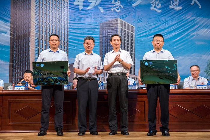 伴隨雄壯的國歌,大會正式開幕。副校長宋中民、王強(qiáng)分別宣讀了中國共產(chǎn)黨煙臺大學(xué)核裝備與核工程學(xué)院總支部委員會成立及干部任命文件、核裝備與核工程學(xué)院成立及干部任命文件。校長郭善利表示,煙臺大學(xué)將與臺海集團(tuán)一道,緊緊圍繞核裝備與核工程領(lǐng)域進(jìn)行校企合作,為服務(wù)區(qū)域戰(zhàn)略產(chǎn)業(yè)創(chuàng)新驅(qū)動發(fā)展作出應(yīng)有貢獻(xiàn)。針對核裝備與核工程學(xué)院的發(fā)展,郭善利提出三點希望:一要牢記初心使命,主動融入國家和省市發(fā)展需求;二要堅持高點定位,高水平發(fā)展,團(tuán)結(jié)帶領(lǐng)教職員工完成發(fā)展目標(biāo)任務(wù);三要抓住發(fā)展機(jī)遇,投身相關(guān)產(chǎn)業(yè)發(fā)展。臺海集團(tuán)總裁趙博鴻表示,臺海集團(tuán)將與學(xué)校和社會各界人士一道,把煙臺大學(xué)核裝備與核工程學(xué)院建設(shè)成世界一流的國際核能學(xué)院,與世界接軌,提升我國高端裝備制造水平。副市長金志海希望煙臺大學(xué)與臺海集團(tuán)實現(xiàn)互惠雙贏,推動學(xué)院和研究院高質(zhì)量發(fā)展;希望雙方積極探索,為煙臺市加快國家級核電研發(fā)中心建設(shè)、助力新舊動能轉(zhuǎn)換提供強(qiáng)有力的支持。煙臺市副市長金志海、煙臺大學(xué)黨委書記張偉共同為核裝備與核工程學(xué)院授牌。