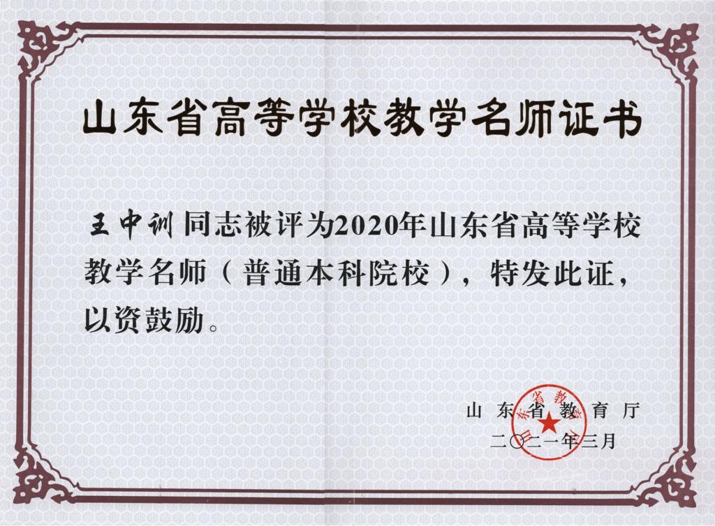 學院教師榮獲山東省教學名師