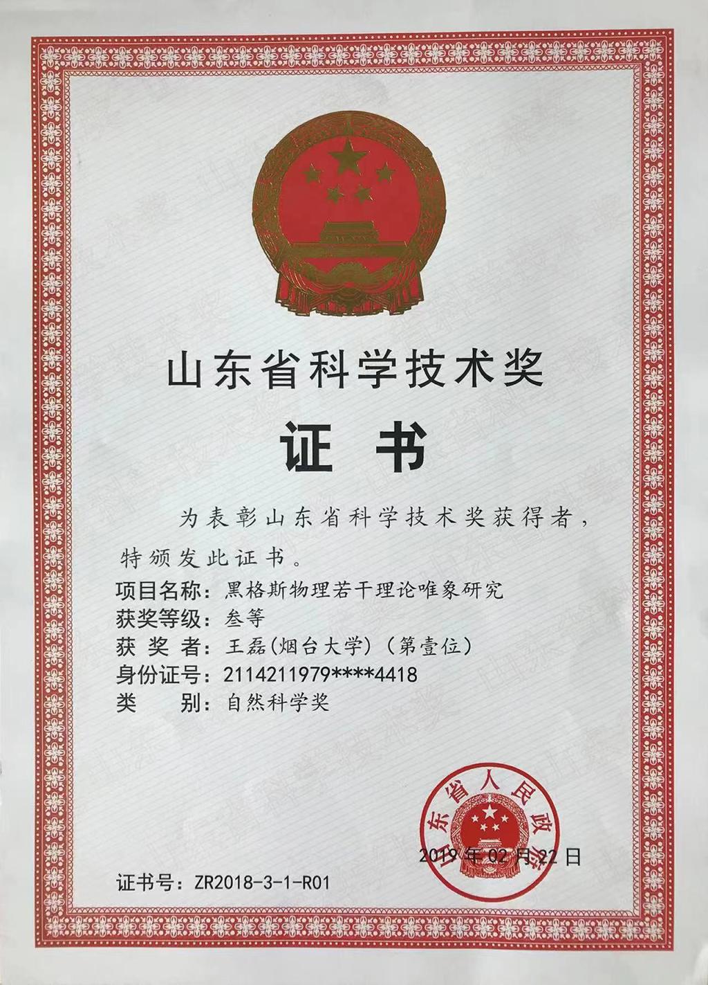學院教師榮獲山東省科學技術三等獎