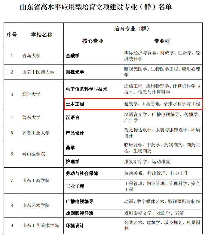 土木工程專業獲批山東省高水平應用型培育立項建設專業(群)