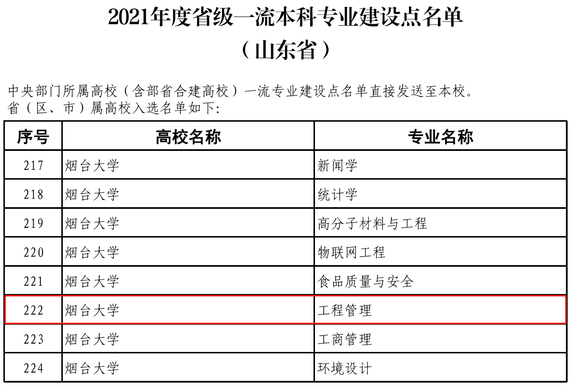工程管理專業獲批山東省一流專業建設點