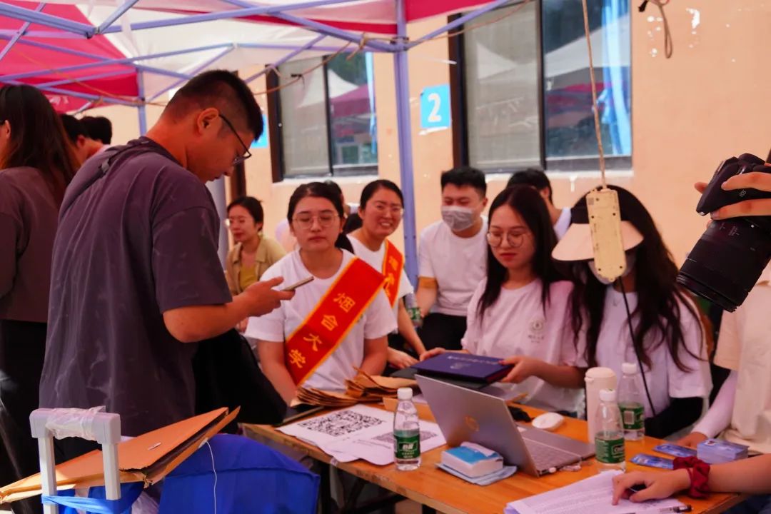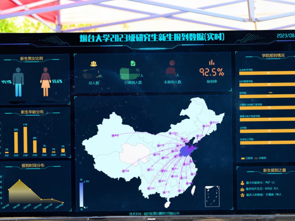 迎新現(xiàn)場,可實時顯示新生報到數(shù)據(jù)的大屏引得不少人注目,各學(xué)院新生報到數(shù)據(jù)、生源分布等一目了然,工作人員可以更加直觀地查看新生報到情況。據(jù)學(xué)生工作處相關(guān)負(fù)責(zé)人介紹,今年的研究生新生報到流程更加高效、便捷,同學(xué)們在開學(xué)前通過學(xué)校迎新系統(tǒng)辦理線上預(yù)報到手續(xù),完成個人信息采集、費用繳納、宿舍查詢、行程登記等手續(xù),這不僅簡化了現(xiàn)場報到流程,也便于學(xué)校提前掌握學(xué)生來煙行程及相關(guān)信息,及時與學(xué)生取得聯(lián)系和統(tǒng)籌安排接站。報到現(xiàn)場,迎新工作人員可通過手機(jī)企業(yè)微信掃描報到二維碼,新生通過手機(jī)端完成報到手續(xù)?!皥蟮搅鞒谭浅8咝?、順暢,對煙大初印象非常好!”經(jīng)濟(jì)管理學(xué)院2023級研究生吳靜感慨道。