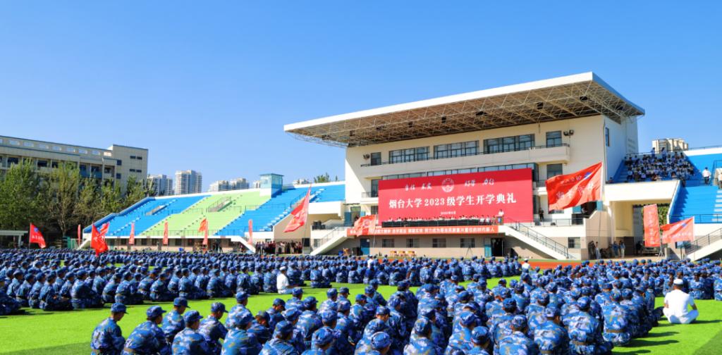 【本站訊】風好正是揚帆時,奮楫逐浪天地寬。9月14日上午,煙臺大學主校區2023級學生開學典禮在體育場舉行。學校領導張殿臣、宋中民、郝曙光、王強、馮素玲、李存杰、姚昌、張獻勇,承訓部隊、海軍航空大學相關負責人,學校機關各部門、直屬單位主要負責人,主校區各學院黨政主要負責人出席典禮,共同見證來自全國30個省、自治區、直轄市以及港澳臺地區的7000余名2023級本科生、碩士研究生、博士研究生從此作為煙大人開啟人生新篇章。黨委書記張殿臣發表題為《立報國志 走勤學路 攀萬丈峰——在投身強國建設、復興偉業中綻放青春光彩》的講話,寄語全體新生在強國建設、民族復興的偉大征程中書寫青春華章。典禮由黨委常委、副校長姚昌主持。