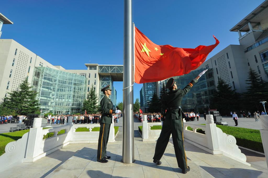 紅旗“燃”初心,奮斗正當時。近年來,每年舉行國慶節主題升旗儀式,已成為煙臺大學面向全校師生開展的一堂經典而生動的思政課。向國旗敬禮致意,將激勵每一位煙大青年恪守“守信,求實,好學,力行”的校訓,樹立為祖國奉獻的崇高理想,在新征程中,挺膺擔當、埋頭苦干;在新偉業中,承擔重任,不懈奮斗,真正成為有理想、敢擔當、能吃苦、肯奮斗的新時代好青年,以實際行動踐行“請黨放心,強國有我”的錚錚誓言!