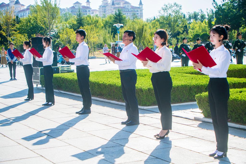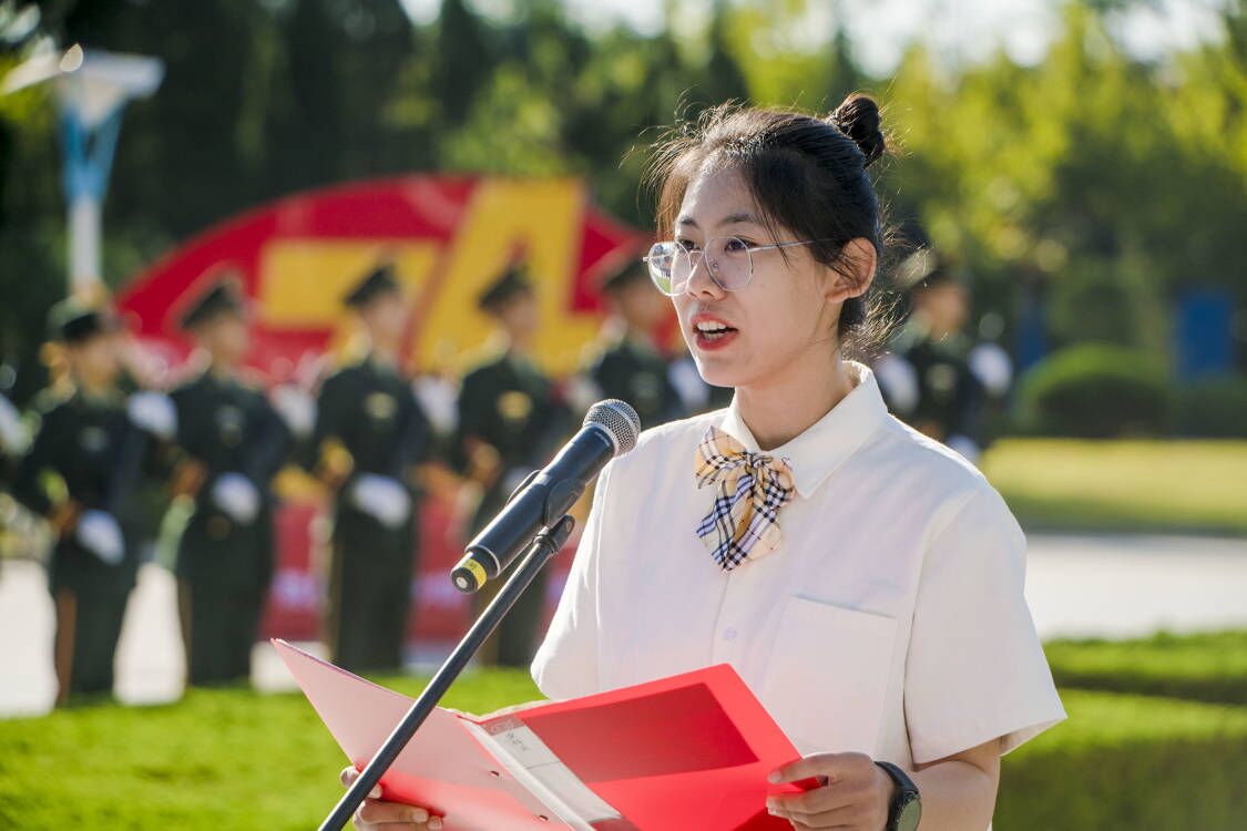 “親愛的祖國,我愿做你宏偉事業中的一筆一劃,將我的心跳、我的呼吸、我的全部賦予你。奮楫篤行、砥礪向前。在新征程中,挺膺擔當、埋頭苦干;在新偉業中,承擔重任,不懈奮斗。”青年學生代表、教師代表,在國旗下進行了《五星紅旗迎風揚,吾輩青年勇擔當》的原創詩朗誦。一同回顧百年來中國走過的崢嶸歲月、波瀾壯闊,歌頌新時代中國發展的日新月異、盛世中華,展現出中國青年砥礪前行、不負眾望的責任擔當。