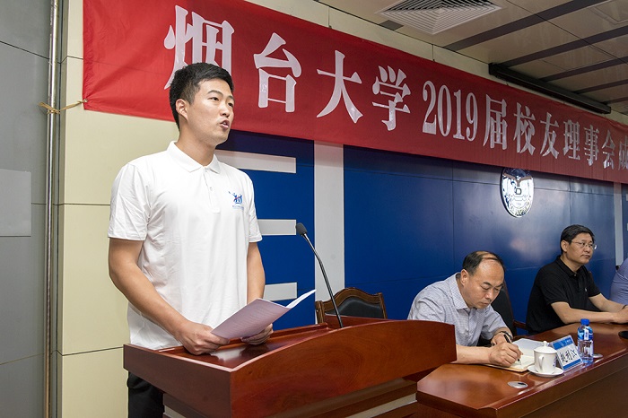 大會宣讀了《關于成立煙臺大學2019屆校友理事會的決定》《煙臺大學2019屆校友理事會理事名單》以及《煙臺大學2019屆校友理事會常務理事及組織機構人員名單》,與會老師逐一為每位理事頒發聘書。2019屆校友理事會理事長、原校研究生會主席、機電汽車工程學院姜稀臏代表理事會全體理事發言,表達了對母校培養的感激之情,感謝恩師們傳授的專業知識及嚴謹的學習態度。鄭重承諾認真履職盡責,發揮好橋梁紐帶作用,力求創新,樂于奉獻,努力將理事會各項工作落到實處,不辜負母校和校友們的信任和期待。