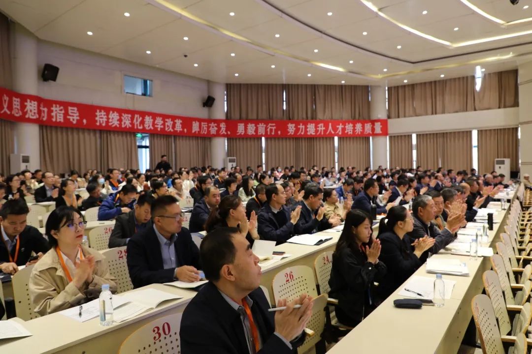 宋中民作題為“落實立德樹人根本任務 促進本科教學高質量發展”的工作報告,圍繞“強化思想引領,堅持立德樹人”“強化內涵發展,專業建設成效顯著”“加強頂層設計,教學改革成果顯著”“深化改革創新,推進課程建設”“激勵獎勵并舉,創新能力顯著提升”“加強政策引導,教師培養成效顯著”“加大投入力度,教學條件明顯改善”“加強質量監控,教學質量保障有力”“優化生源結構,招生質量持續向好”“拓展合作辦學,國際化水平大幅提升”十個方面,對學校第十屆本科教學工作會議以來的工作成績進行總結,提出下一步教學工作的目標與舉措,并就做好新一輪本科教育教學審核評估工作進行了部署安排。報告指出,下一步,學校將以“以習近平新時代中國特色社會主義思想為指導,全面貫徹黨的教育方針,以改革為抓手,以創新為驅動,強基固本,‘五育’并舉,開創立德樹人新局面、教育教學新氣象”為教學工作重點,豐富人才培養模式,滿足學生發展需要;強化專業轉型升級,打造一流專業;強化課程思政和課程美育,建設一流課程;推進課堂教學改革,提升教學數字化水平;強化教材育人功能,建設一流教材;強化實踐教學,提升實踐教學質量;重視基層教學組織建設,提升教師教學能力;調動教師教學積極性,提升教學改革成效。