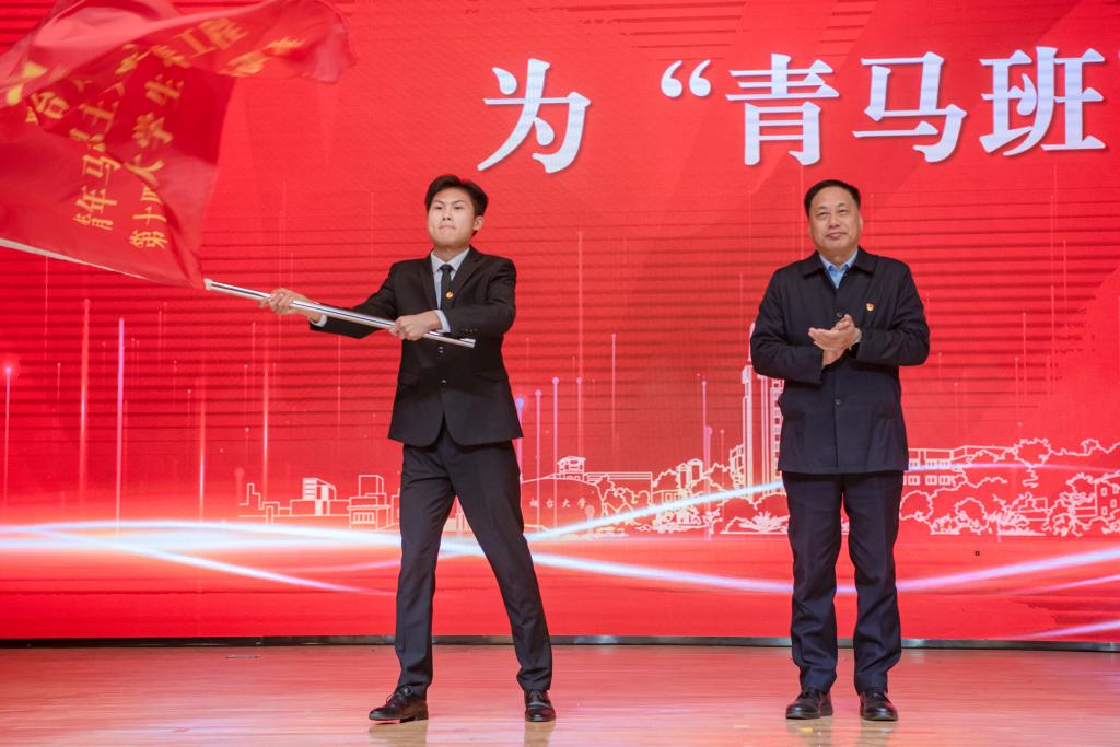 張殿臣為煙臺大學第十四期“青馬班”授旗并對本次培訓提出希望和要求。他強調,全體“青馬班”學員要堅定理想信念,始終保持與黨同心、跟黨奮斗的政治方向;挺膺擔當作為,始終筑牢勇當先鋒、赤誠奉獻的良好品格;帶頭吃苦耐勞,始終發揚艱苦樸素、戒驕戒躁的優良作風;接續團結奮斗,始終踐行“請黨放心、強國有我”的青春誓言。張殿臣勉勵學員們牢記習近平總書記的囑托,在培訓中掌握本領,汲取營養,踔厲奮發、勇毅前行,切實把學習成果轉化為生動實踐和實際成效,努力成為具有忠誠的政治品格、濃厚的家國情懷、扎實的理論功底、突出的能力素質,忠恕任事、人品服眾的團學骨干。