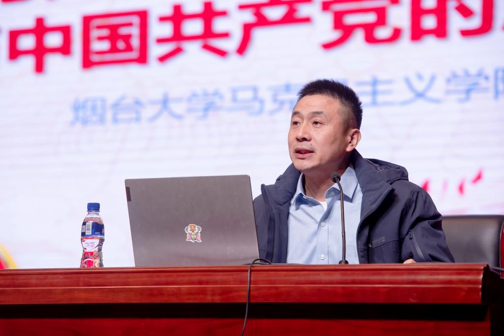 儀式結束后,馬克思主義學院教師蘇鑫以《歷史和人民選擇了馬克思主義》為題作首場報告。