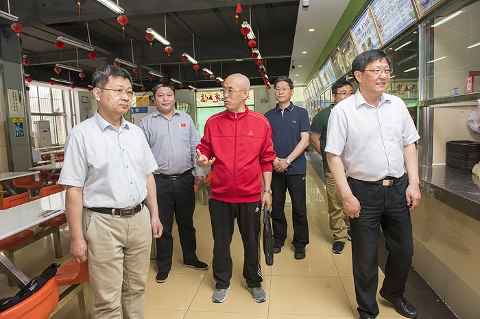 在學生餐廳,學校領導仔細查看了后廚、庫房以及餐具消毒系統,詳細詢問了各個餐廳的消防及衛生情況、餐廳員工的住宿生活情況。在保衛處,學校領導實地查看了校園監控系統、校園交通秩序疏導整頓情況和消防管理工作,并詳細了解人臉識別技術的應用、報警點改建等具體問題。在聽取有關部門的現場匯報后,張偉指出,校園安全工作要常抓不懈,持續保持高度警覺,要時刻繃緊安全這根弦,居安思危、未雨綢繆;相關單位要進一步從細節入手,分領域、分區域查找風險點,按節點、按重點排查隱患;要充分認識當前安全穩定領域面臨的風險挑戰,以高度的政治責任感和強烈使命感做好校園的后勤保障和安全保衛工作,為學校的改革發展創造良好環境。