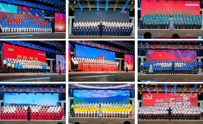 6月28日晚7時,以“追夢,在新時代的長征路上”為主題的煙臺大學“慶七一,迎國慶、校慶教職工歌詠會”在青春廣場拉開帷幕。學校領導張偉、郭善利、張殿臣、孫祥斌、鄧昌亮、宋中民、周勝良、郝曙光、王強、李合亮與全校師生一起觀看并參加了演出。