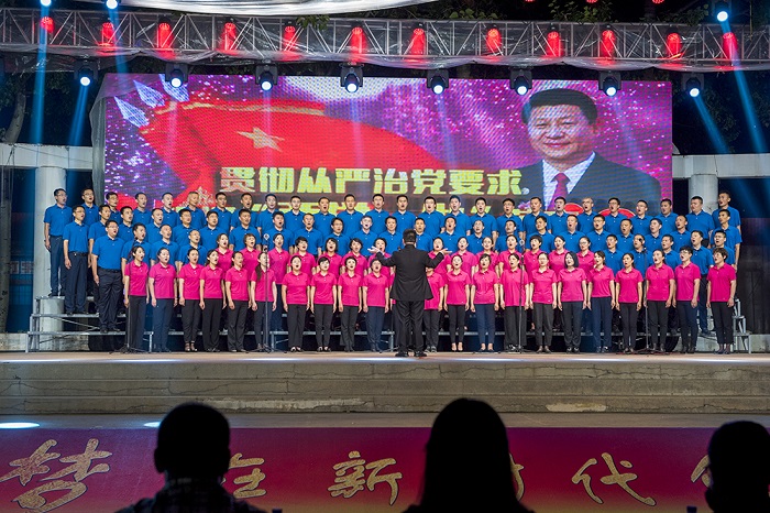 “不需要你認識我,不渴望你知道我,我把青春融進祖國的江河,山知道我。江河知道我。祖國不會忘記,不會忘記我!”一曲《祖國不會忘記》劃破夜空,嘹亮的歌聲唱響了煙園,歌唱偉大的黨、偉大的祖國。“你是這樣風雨兼程,你和百姓同心同行,就像樹木扎根大地,就像種子和泥土相依……”一曲《黨員學習筆記》把大家帶入那段青蔥歲月。《我們都是神槍手》《沒有共產黨就沒有新中國》展現了革命先烈演繹的一幕幕可歌可泣的歷史畫卷;《祖國不會忘記》《學習強國歌》《國家》《我的中國心》表達了中華兒女對國家的熱愛之情和為祖國奉獻的堅定信念;《龍的傳人》《中國,中國,鮮紅的太陽永不落》唱出了對中國美好未來的祝福,表達了濃濃的愛國情;《追尋》則將生命的那份純真表現得淋漓盡致,感染了在場的許多觀眾。
