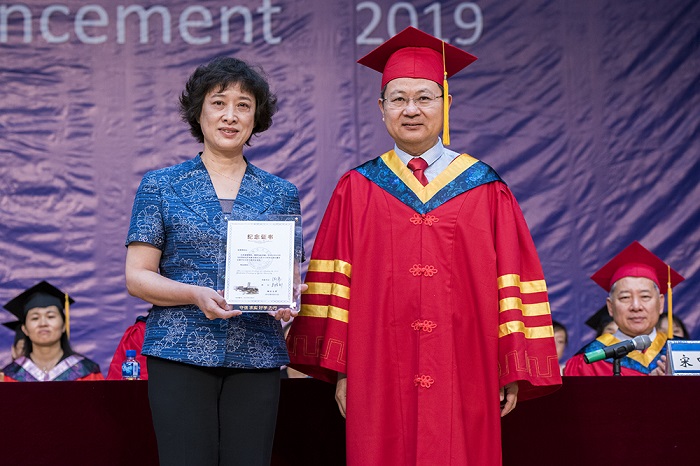 黨委書記張偉、校長郭善利分別為張葆春和程名望校友頒發紀念證書。
