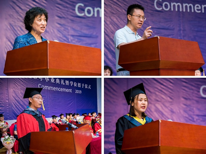 煙臺大學84級校友、煙臺張裕集團有限公司可雅白蘭地酒莊經理張葆春,93級校友、同濟大學經濟與管理學院副院長程名望作為校友代表先后發言。他們對母校的培養表示感謝,希望畢業生牢記責任,熱愛本職,腳踏實地,刻苦鉆研,不負老師的厚望,不負母校的培養。