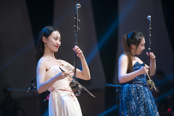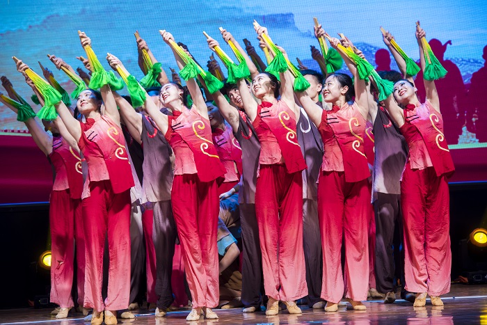 演出之前,部隊官兵拉歌環節熱血沸騰,烘托了全場的氣氛。音樂舞蹈學院花腔女高音獨唱《軍營飛來一只百靈》,為退伍老兵送上部隊的溫馨與歡樂。歌曲《游擊隊之歌》《心中的力量》《啊朋友再見》《老兵你要走》通過悠揚的旋律和感人的歌詞細細講述了軍旅故事,直扣官兵心弦。音樂舞蹈學院學生二胡重奏《新賽馬》、薩克斯四重奏《巡邏兵進行曲》以樂器演奏的方式表現了部隊官兵的昂揚斗志。舞蹈《燃夢》充滿青春活力,以及飽含深情的舞蹈《母親的麥田》,通過肢體動作展示了多彩的軍旅人生。啞劇《蛻變》、情景劇《老兵的時光剪影》、軍營Rap《老兵再見》展現了軍旅生活的點點滴滴,戰友情演繹得淋漓盡致,贏得臺下觀眾熱烈的掌聲。整場演出在大學生藝術團歌曲聯唱《正青春》中落下帷幕,學校領導與部隊首長上臺同演職人員一一握手并合影留念。