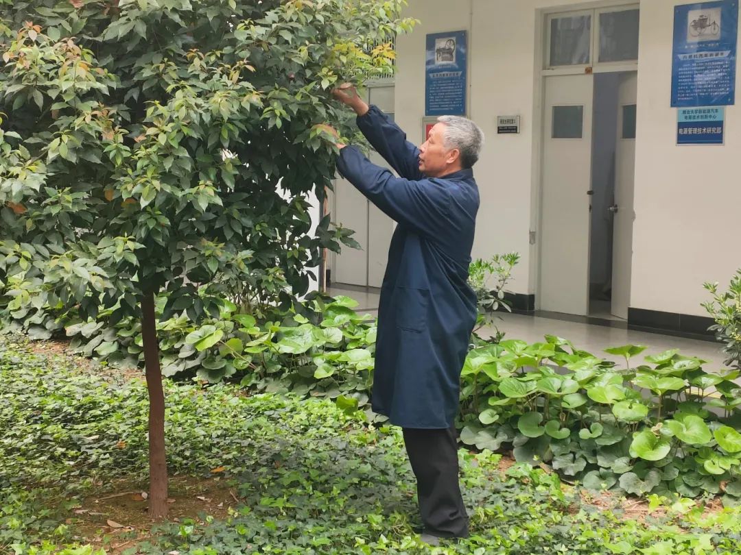 “有時候好辦法恰恰是笨辦法,我總是會鼓勵大家多靠前一些,多承擔一點。”孟祥之說道。他不僅是這樣要求的,也是這樣做的。每次進行新樹種植時,孟祥之總是會沖在最前,規(guī)劃方案、挑選位置、觀察樹木狀態(tài),直到新樹順利“入坑”他才會松一口氣,隨后又匆忙趕往下一棵樹木處。“加班在所難免,認真說來,我們沒有什么明確的休息時間?!泵舷橹χf,“新樹木存活期短,來了就要快速種植,抓緊時間,立馬開干!”而在日常養(yǎng)護過程中,孟祥之會定期觀察校園花木長勢,澆水、修剪、施肥,樁樁件件他都會親力親為,“人隨樹動”成為了他的工作常態(tài)。