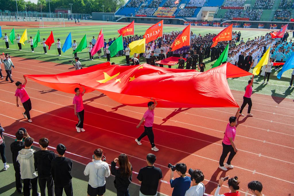 伴隨著雄壯的國歌聲,莊嚴的升旗儀式拉開運動會的序幕。隨著黨委書記盧國強、校長郝曙光宣布運動會開幕,全場氣氛瞬間點燃。開幕式上,由各學院、各單位組成的26個方隊伴隨著激昂的《運動員進行曲》依次入場,他們精神飽滿、意氣風發(fā)、步伐堅定,展現(xiàn)了全校師生團結(jié)協(xié)作、積極進取的精神面貌。