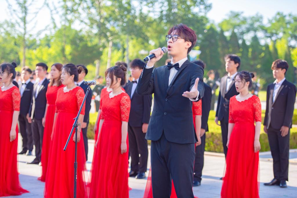 殷殷報國情源遠流長。音樂舞蹈學院海之韻合唱團帶來歌曲《領航》。“人民就是江山,寫就使命擔當,為了人民幸福,為了復興理想,風雨兼程不可阻擋,偉大的中國共產黨,風華正茂、山高水長……”歌聲澎湃,振奮人心,一路走來,無數優秀中華兒女在中國共產黨領導下,在愛國主義旗幟感召下,追趕時代、超越自我、開創未來。