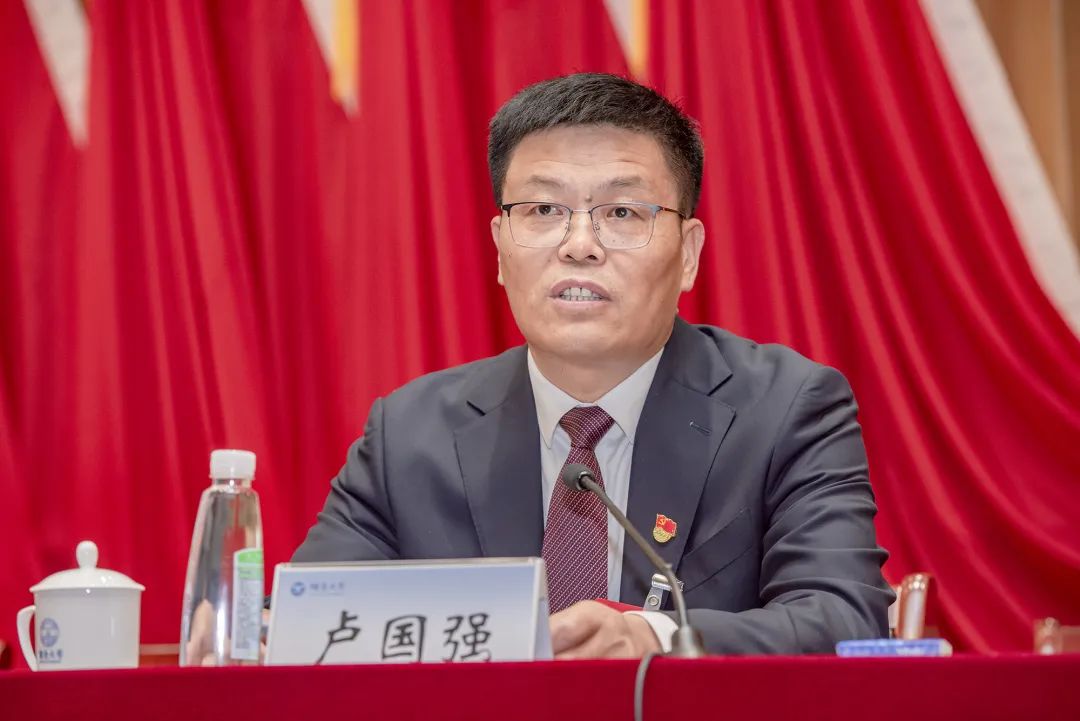 盧國強介紹了召開本次黨代會的重要意義和主要任務、大會的籌備情況以及大會的規模、議程和組織機構,并就開好本次大會提出四點要求。一是提高政治站位,以高度的責任感和使命感開好第五次黨代會。二是認真履行代表職責,高質量完成大會各項既定議程。三是嚴明紀律規矩,確保黨代會風清氣正。四是加強宣傳引導,為黨代會勝利召開營造良好輿論氛圍。盧國強強調,第五次黨代會對學校今后發展具有非常重大的意義,要本著對黨、對學校事業發展高度負責的精神,認真開好這次會議,圓滿完成大會各項任務,切實把這次大會開成一次團結、民主、務實、勝利的大會,開成一次具有里程碑意義的、鼓舞全校師生奮進新征程的大會。