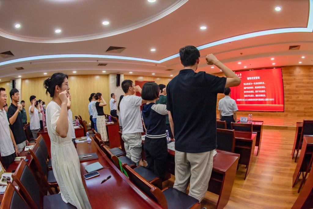 姚昌在講話中向辛勤付出的輔導員老師表示衷心感謝,向新加入輔導員隊伍的老師表示熱烈歡迎。他指出,輔導員是學生成長成才的人生導師和知心朋友,學校一直高度重視輔導員隊伍建設,出臺了隊伍建設相關制度文件,搭建了一系列發展平臺。希望輔導員老師不忘初心、牢記使命,牢固樹立以學生成長為中心的理念,圍繞學生、關照學生、服務學生,在服務學生成長成才中彰顯價值;希望輔導員老師守正創新、與時俱進,結合高質量發展新態勢、育人工作新要求、學生成長新特點,與時俱進、敢于創新,不斷豐富教育方式、優化工作機制、改進工作方法,不斷取得學生工作新成效,在服務學校事業發展大局中找準定位;希望輔導員老師堅持學習、加壓奮進,主動修煉鑄魂育人的政治擔當、履職盡責的育人本領、新質思政的工作能力,做到“政治過硬、業務過硬、作風過硬”,在持續學習實踐中實現個人成長。