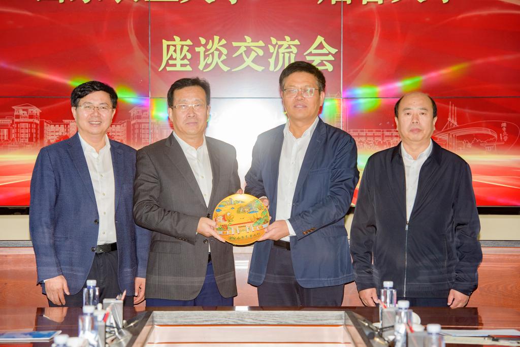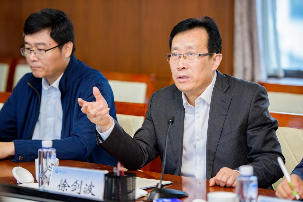 徐劍波對煙臺大學建校40年來取得的辦學成果給予高度評價。他表示,煙臺大學底蘊深厚,辦學起點高,發展特色鮮明,辦學實力和辦學層次快速躍升,社會影響力日益提高。本次來訪交流開啟了雙方深化友誼、共謀發展的新起點,希望兩校以此為契機,拓寬領域,促進事業共同進步,攜手助力我省高等教育高質量發展行穩致遠。冷暢儉分析了山東農業大學、煙臺大學等高校內涵式發展所面臨的機遇和挑戰,表示希望與煙臺大學強化協同創新,奮力譜寫兩校高質量發展的嶄新篇章。徐劍波還代表山東農業大學向學校贈送了紀念品。