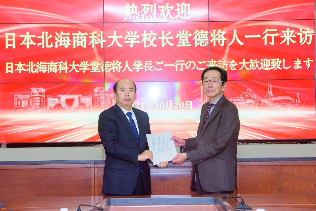 在與堂德將人校長會(huì)談時(shí),郝曙光感謝堂德將人校長專程率團(tuán)來校參加煙臺(tái)大學(xué)建校40周年系列活動(dòng),并回憶了2006年前往日本北海商科大學(xué)訪問的情形,對(duì)該校取得的發(fā)展成就表示祝賀。郝曙光表示,煙臺(tái)大學(xué)一直堅(jiān)持走國際化辦學(xué)道路,與包括北海商科大學(xué)在內(nèi)的友好院校建立了穩(wěn)固的合作關(guān)系,對(duì)推動(dòng)學(xué)校高質(zhì)量發(fā)展起到了重要作用。兩校結(jié)為友好院校19年來,開展了師生交流等一系列合作項(xiàng)目,已有近300名師生參與各類交流項(xiàng)目,希望雙方持續(xù)拓展合作領(lǐng)域,未來重點(diǎn)在教師科研合作方面加大工作力度,力爭盡早取得階段性成果。