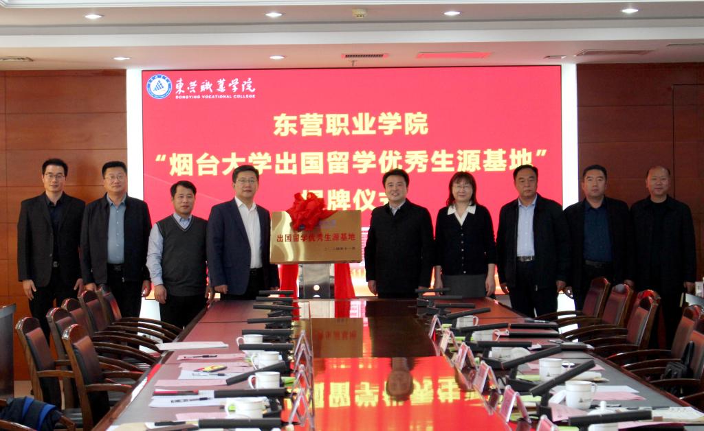 【本站訊】11月6日,副校長王洪波、國際合作交流處和國際教育交流學院負責人等一行4人到訪東營職業學院,與東營職業學院校領導進行座談交流,舉行“煙臺大學出國留學優秀生源基地”揭牌儀式。東營職業學院黨委副書記、院長解濤和相關部門負責人參加揭牌儀式。