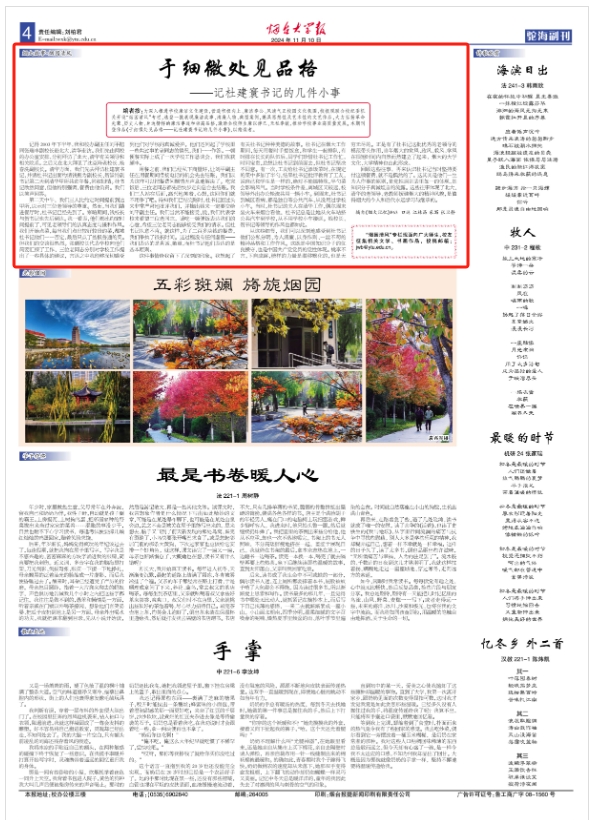 第697期《煙臺大學報》“煙園清風”專欄刊登了《于細微處見品格——記杜建寰書記的幾件小事》,現(xiàn)將原文轉(zhuǎn)載如下: