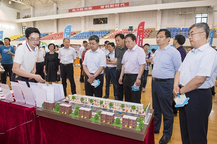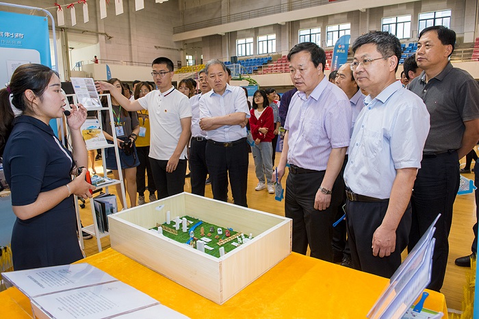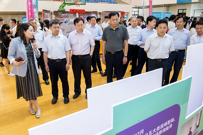 為有效增強我校廣大青年學生創新創業意識,大力深化創新創業理念,積極營造創新創業濃厚氛圍,6月7日,我校第十六屆“挑戰杯”省賽獲獎作品觀摩展示活動在大學生活動中心舉行,累計4000名師生前往參觀。校領導張偉、郭善利、張殿臣、孫祥斌、鄧昌亮、宋中民、周勝良、郝曙光、王強、李合亮以及有關職能部門、學院負責人也到現場參觀指導工作。