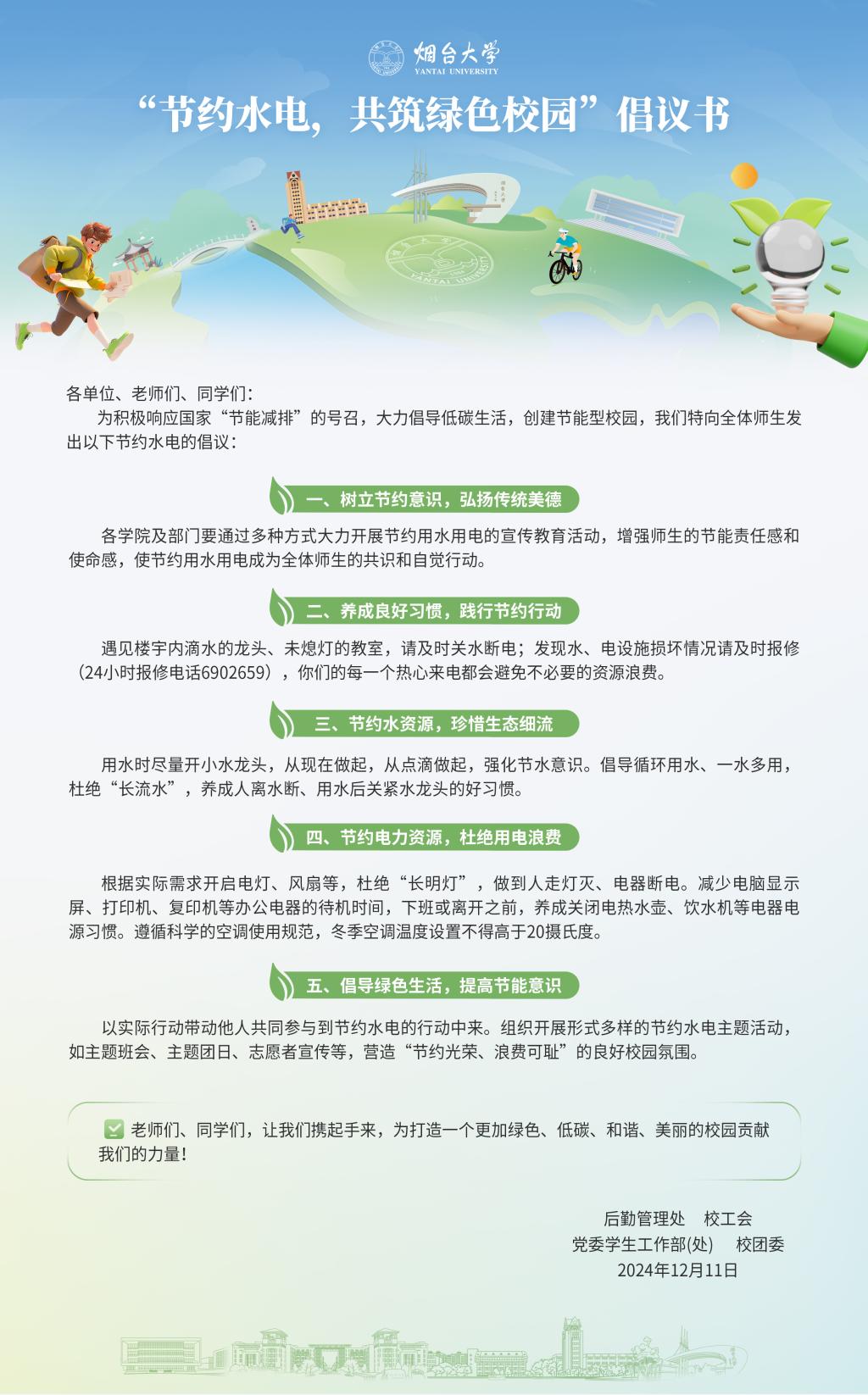 “節約水電,共筑綠色校園”倡議書