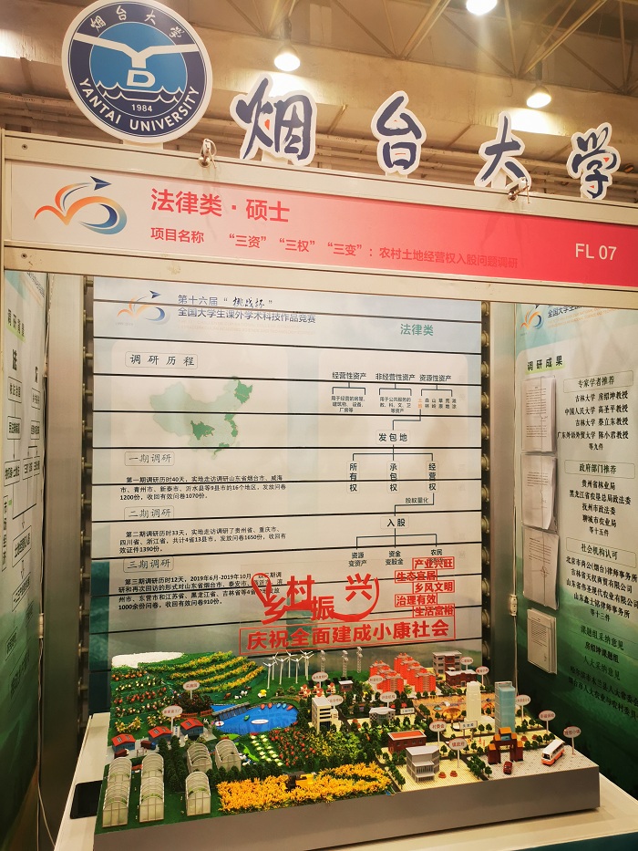 本屆國賽,我校法學院黃偉明教授、張龍老師指導的“三資”“三權”“三變”:農村土地經營權入股問題調研團隊代表學校參加國賽終審決賽,斬獲國賽二等獎。項目在“三權分置”的大背景下,結合“三變改革”的政策,針對農村土地資源性資產中已發包土地的經營權入股問題展開實地調研,并取得了豐碩的調研成果,得到評審專家的一致好評。另有,計算機與控制工程學院的全自動蘋果套網套裝箱機和化學化工學院的環境友好型高效抑制單寧擴散水性木器漆助劑兩項作品獲得國賽三等獎。