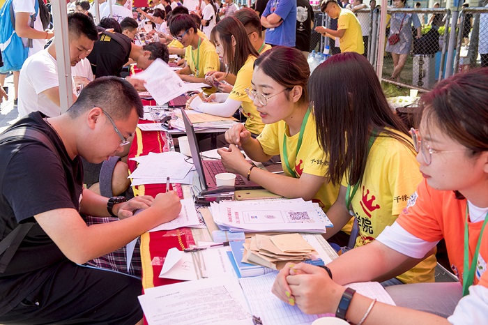 菁華歲月,莘莘好學以求實;千春時光,孜孜守信而力行。迎新現場,學長學姐還向新同學送上祝福,祝愿同學們在新的征程綻放絢爛的青春與夢想!
