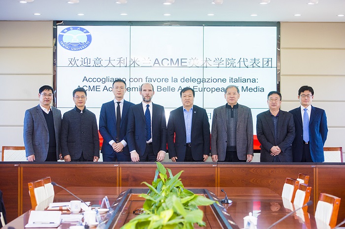 12月17日上午,意大利米蘭ACME美術學院執行校長洛倫佐·普拉托先生,項目總監張海佳譯先生一行訪問我校。校長郭善利、副校長宋中民會見代表團,國際合作交流處、建筑學院負責人參加會見。郭善利與普拉托簽署了兩校合作協議。