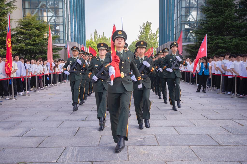 晨光熹微,清風送爽。伴隨著鐘樓悠揚而莊嚴的第七聲鐘響,煙臺大學國旗護衛隊隊員迎著朝陽,邁著鏗鏘有力的步伐,護衛著鮮艷的五星紅旗,正步走向升旗臺。