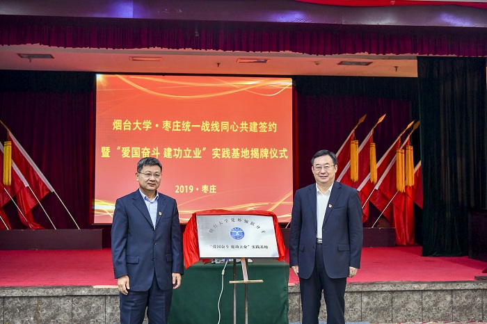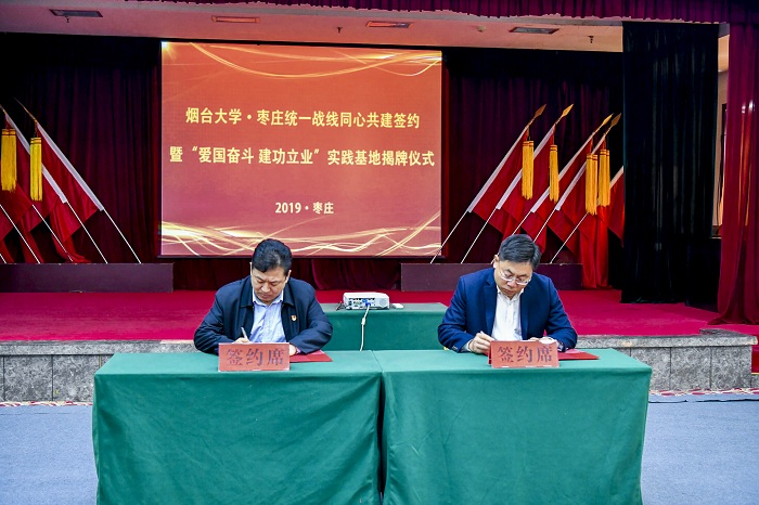 11月5日,煙臺(tái)大學(xué)·棗莊統(tǒng)一戰(zhàn)線同心共建簽約暨煙臺(tái)大學(xué)黨外知識(shí)分子“愛(ài)國(guó)奮斗建功立業(yè)”實(shí)踐基地揭牌儀式在棗莊市山亭區(qū)舉行。煙臺(tái)大學(xué)黨委書(shū)記張偉,黨委常委、副校長(zhǎng)孫祥斌,棗莊市委常委、宣傳部部長(zhǎng)、政法委書(shū)記李愛(ài)杰,棗莊市委統(tǒng)戰(zhàn)部分管日常工作副部長(zhǎng)王虎出席,學(xué)校辦公室、黨委組織部、黨委統(tǒng)戰(zhàn)部負(fù)責(zé)人,棗莊市相關(guān)職能部門(mén)、山亭區(qū)委負(fù)責(zé)人和工作人員參加儀式。儀式由棗莊市山亭區(qū)委書(shū)記畢志偉主持。