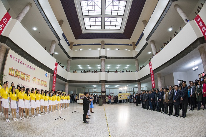 時值第23個世界讀書日,4月23日下午,在花香四溢的煙園,在楊柳依依的三元湖畔,在寧靜的承先圖書館,以“山海毓秀、書香潤德”為主題的煙臺大學第十六屆讀書節正式開幕。煙臺市委宣傳部副部長李波,煙臺大學黨委書記張偉,副校長孫祥斌、王強出席開幕式。